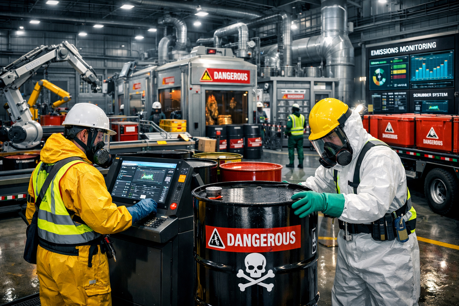 - Insinerator bersuhu tinggi (≥1.000°C) yang memastikan destruksi sempurna limbah berbahaya